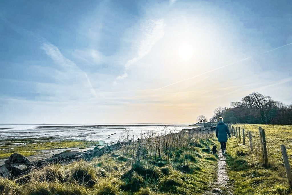 1. From Bardsea Beach parking area, head north along the path next to the beach. The sea will be on your right and you will be higher than the level of the beach, with a sea wall next to you.