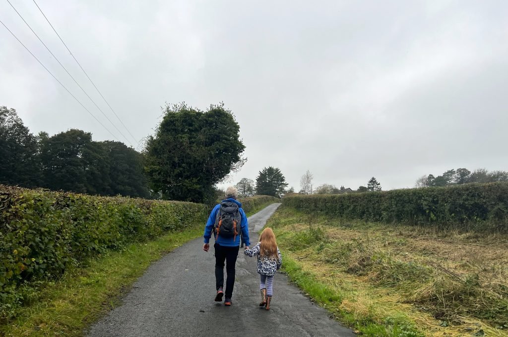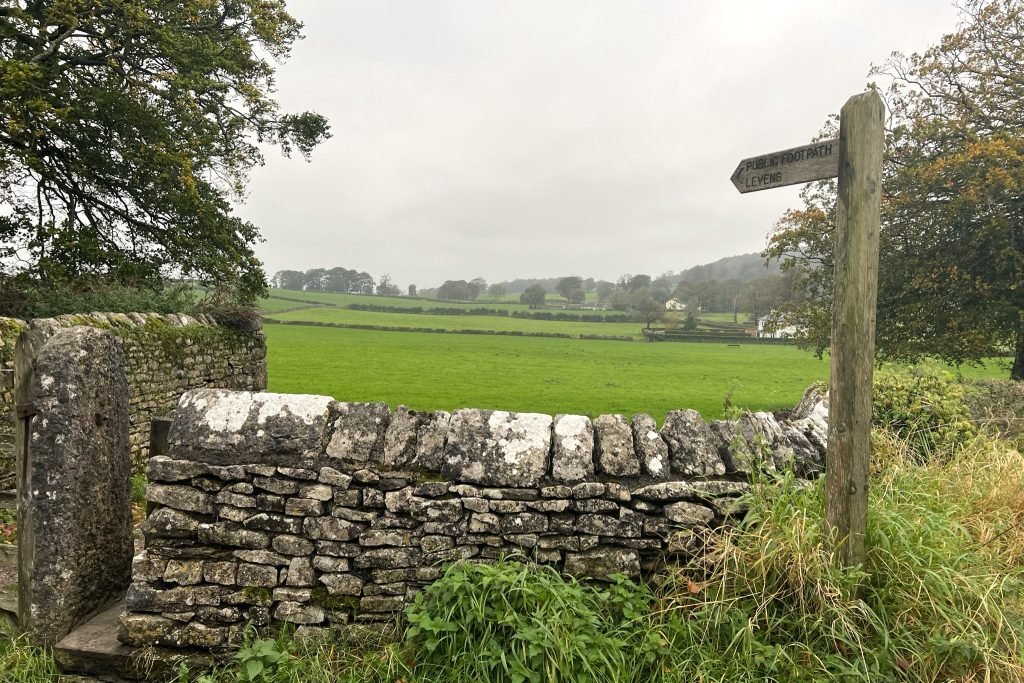 10. The underpass will bring you out on another very quiet road. Head left along here, and follow the road until you get to a gate/stile on your left, with a signpost for ‘Public Footpath Levens’.