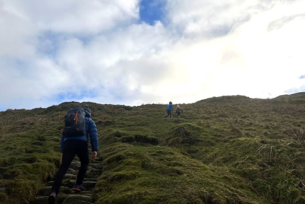 7. Continue to follow this path as it makes it’s way uphill. Soon you will come to a kissing gate (where your tweens may or may not run away from you as you suggest using a kissing gate in the traditional way) in the wall. Go through this gate, where you will see the start of the stepped stone path that will lead you all the way almost to the summit. Take this path.
