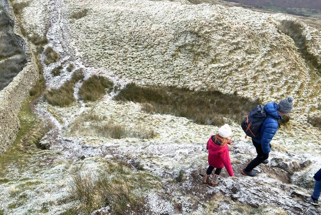 Sidenote – my 7 year old was playing on an icy patch up here, when it cracked and one foot went straight through into a bog, right over the tops of her wellies. Not advised! So go with caution if there are icy patches.