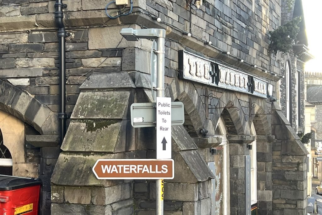 2. From here, head towards to the Salutation Hotel. Just past here (to the right if you’re looking at the hotel) you’ll see a sign saying ‘Waterfalls’ just next to the old Market Hall. Follow this sign onto Stockghyll Lane.