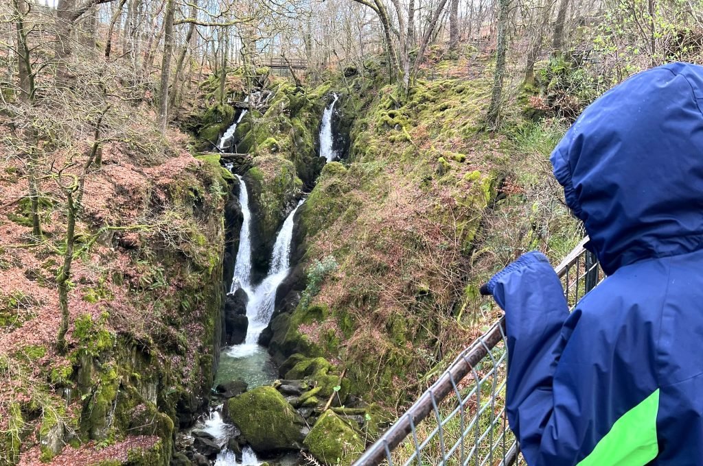 Continue to follow the signs with red arrows to lead you through the woods. There are a few viewing points along the way to enjoy Stockghyll waterfalls, with benches to stop for a snack and a drink.